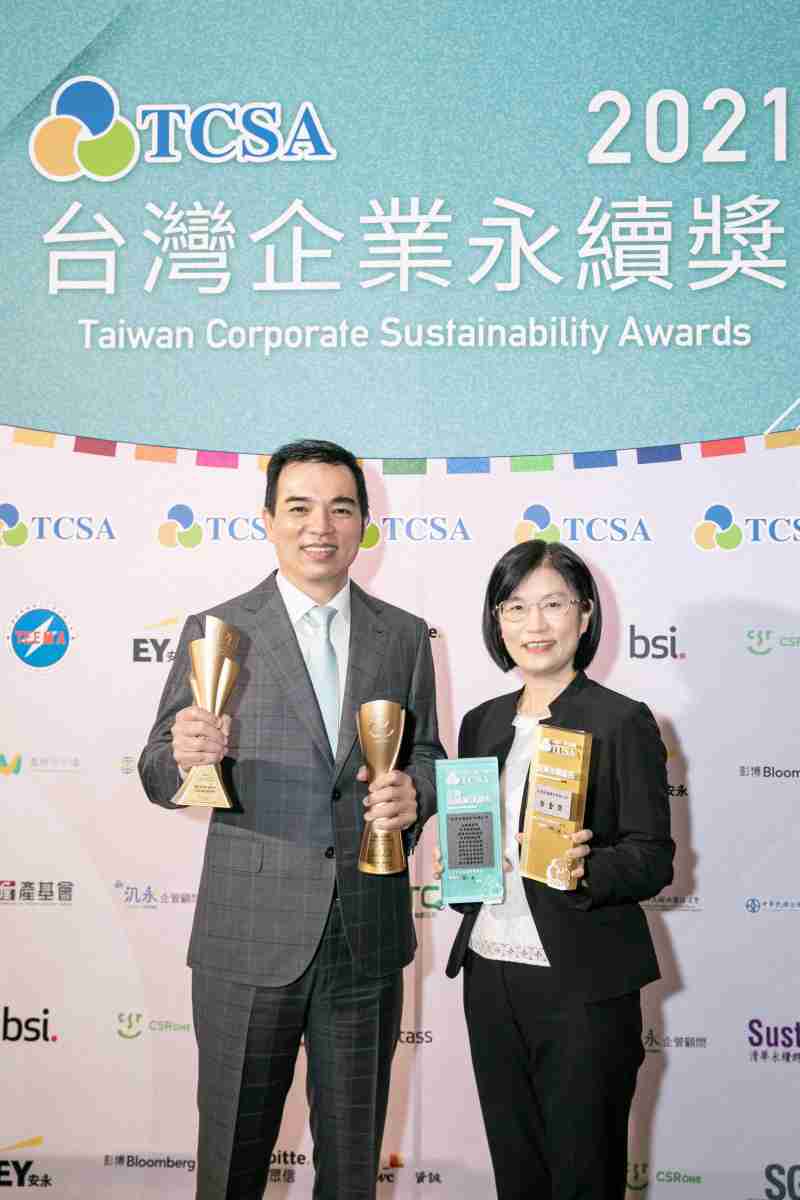 达在台湾永续奖所评比环境、、、、社会、、、治理等各面向的永续绩效均获高度肯定 (左:糖果派对光电总经理暨营运长柯富仁,,右:糖果派对光电永续长古秀华)
