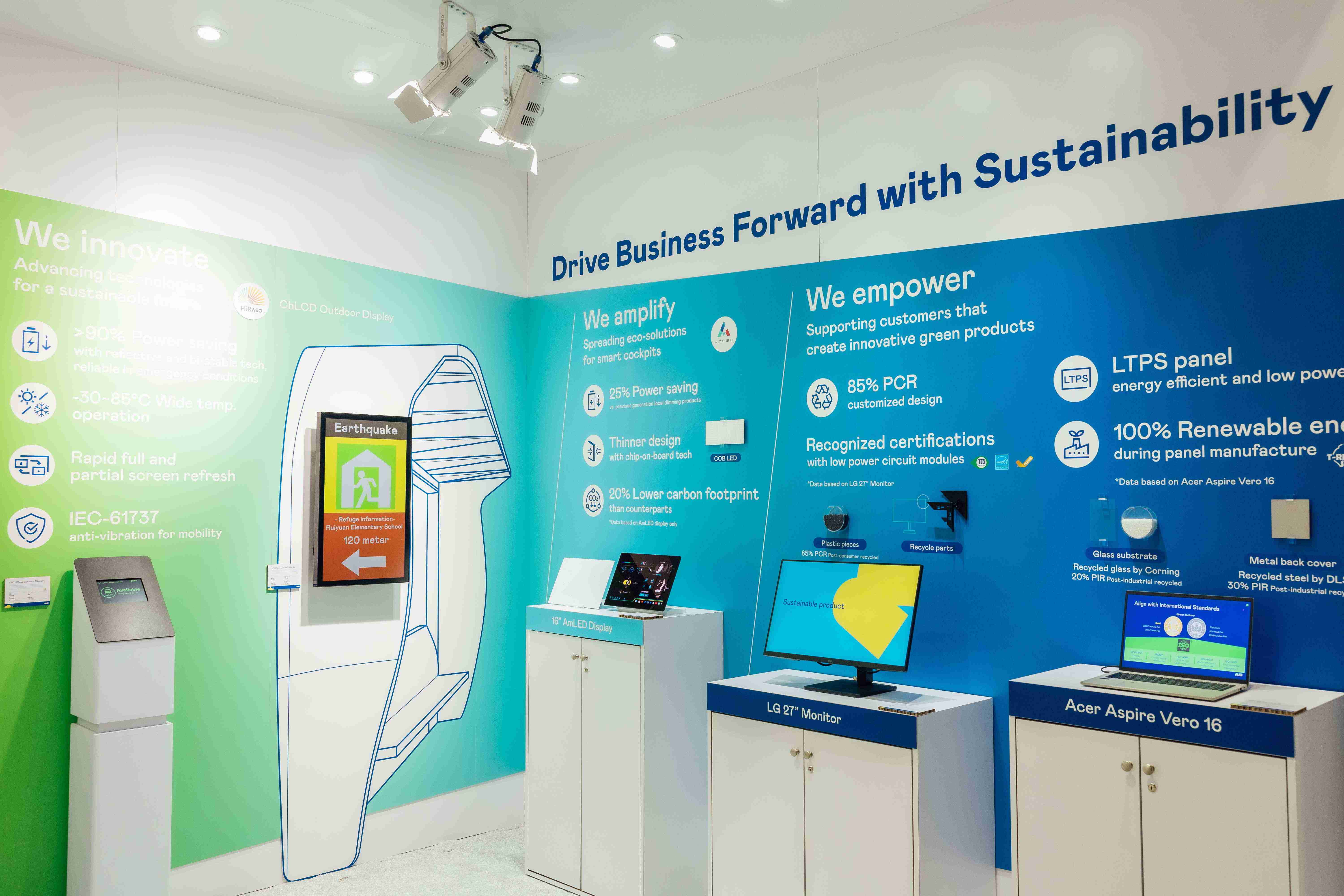 糖果派对运用创新显示技术HiRaso胆固醇液晶双稳态技术达到显示零耗能、、、扩大节能省电的AmLED显示技术应用于车用产品、、、以再生的消费后回收(PCR)塑料及全绿电生产之面板,,应用于笔电及萤幕,,增加绿色价值。。。