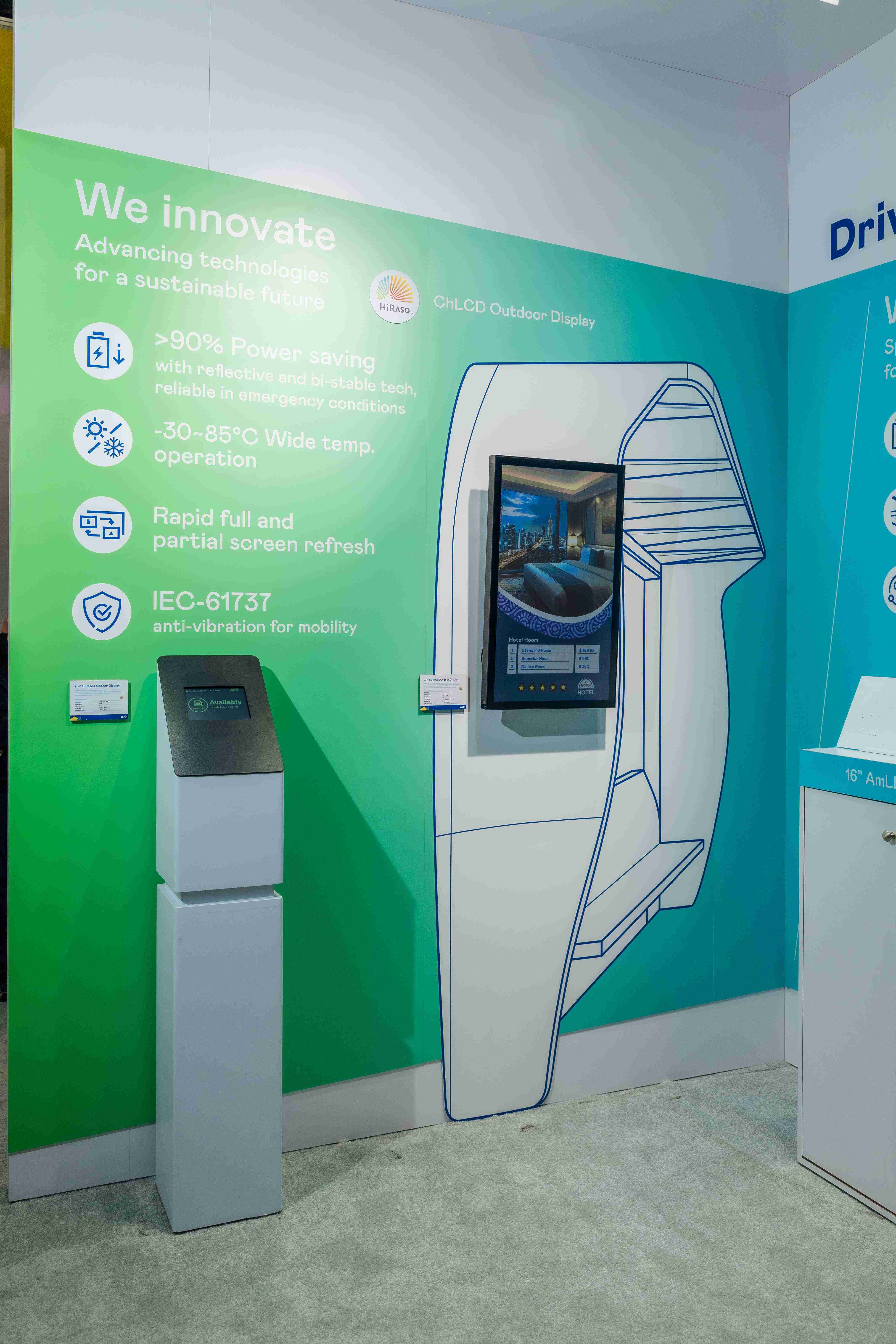 HiRaso胆固醇液晶显示器运用反射环境光线的方式,,,,呈现影像显示时零耗能的环保省电诉求,,光线愈强愈能呈现绝佳的色彩饱和度及显示效果,,同时在摄氏-30度至85度间宽温的使用优势,,为户外电子看板的新首选。。
