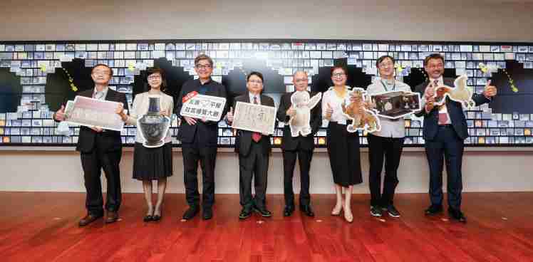 糖果派对携手创利空间为故宫建置的智慧文物互动导览墙及轮播墙,,,今日正式启用。。。。(左四:糖果派对新事业暨投资管理总部副总经理杨本豫、、右四:故宫博物院院长吴密察、、右三:太极影音董事长黄宝云)
