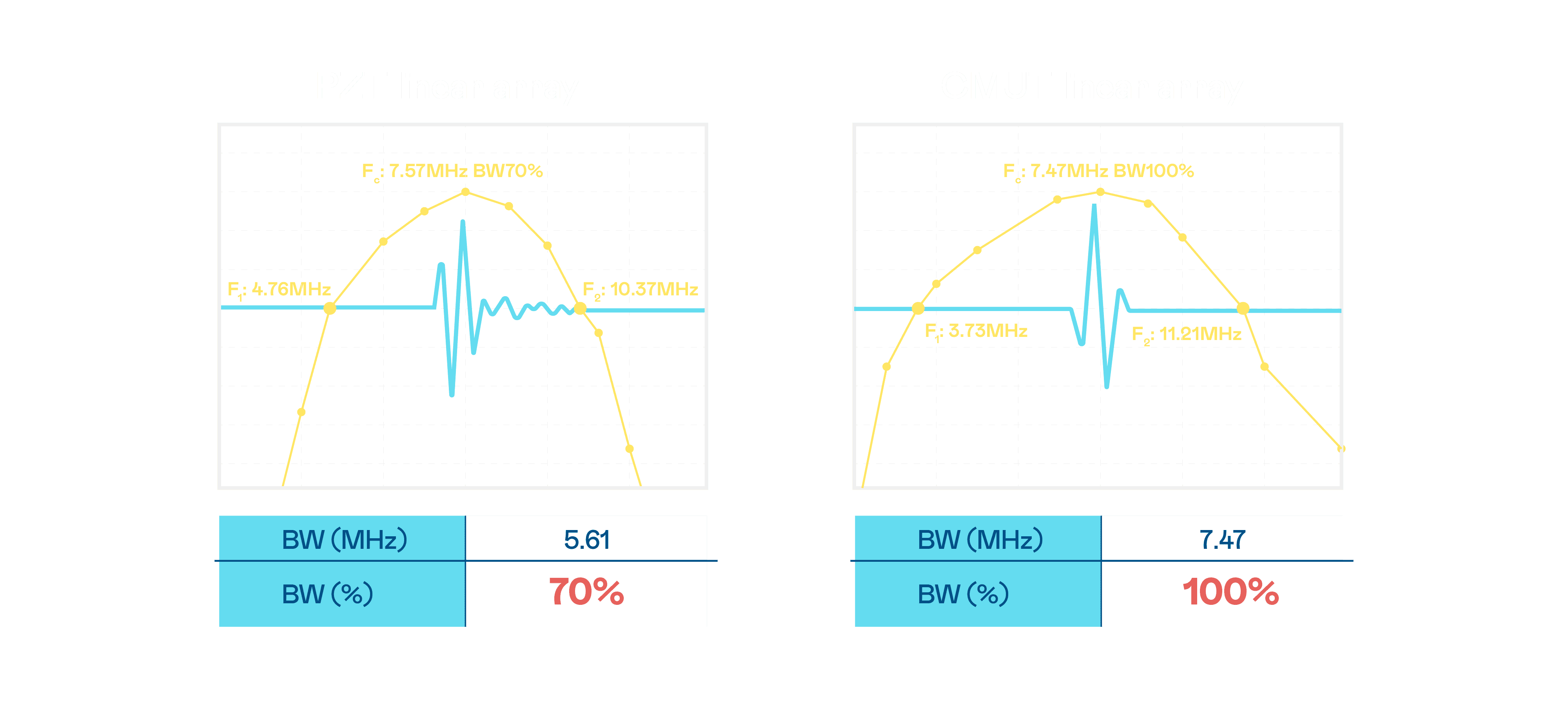 CMUT 技术是一种用电容式微机电元件来产生超音波讯号的技术。。与传统 PZT 压电式技术相比,,,,CMUT 频宽增加 30%,,,,更宽频的超音波讯号让影像解析度大幅提升,,,,是实现高影像品质医疗超音波扫描、、、促进精准医疗发展的关键技术。。